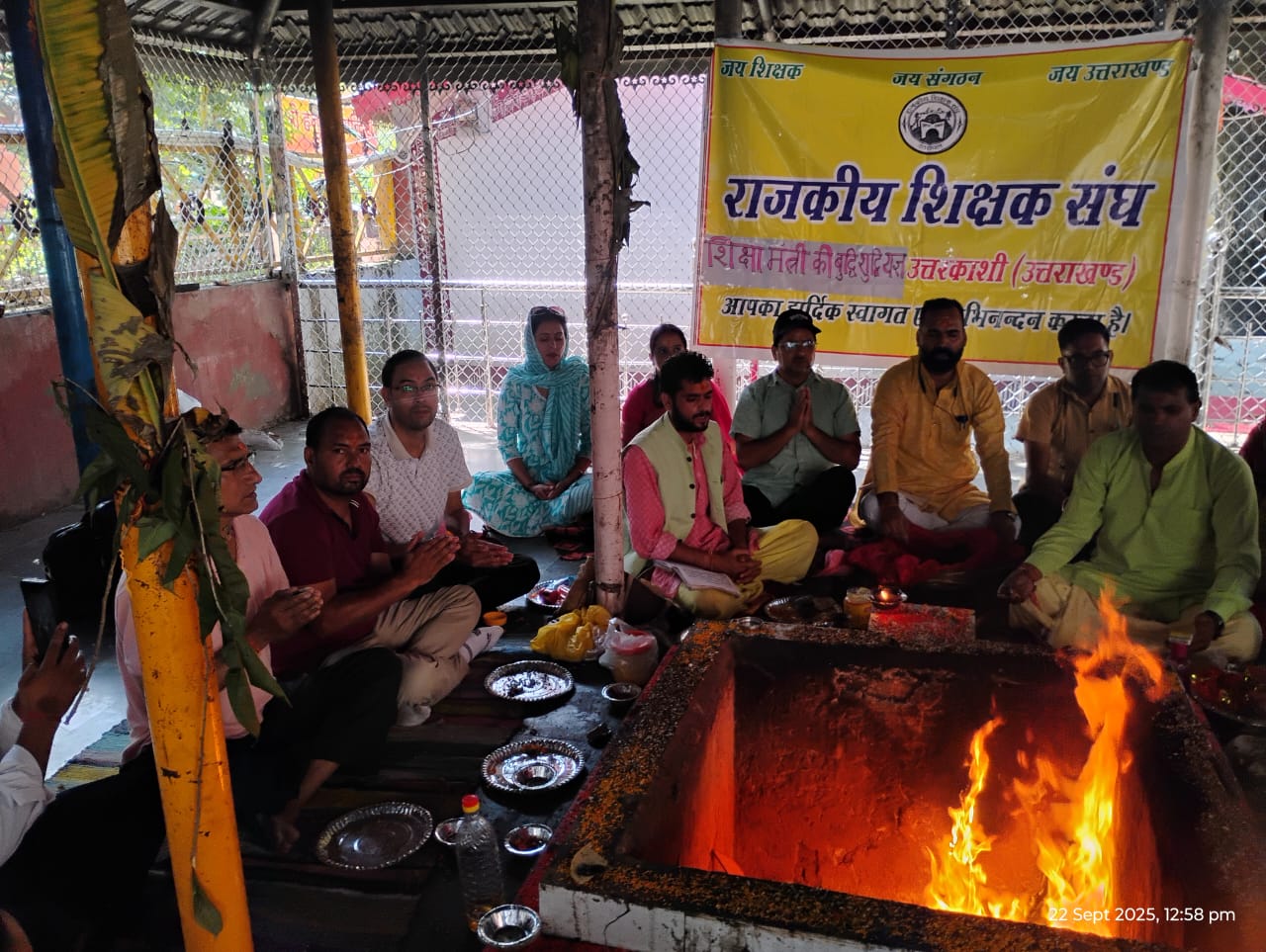 साथ ही समस्त गैर शैक्षणिक कार्यों का पूर्णतः बहिष्कार किया जा रहा है। राजकीय शिक्षक संघ जनपद शाखा उत्तरकाशी, अपने प्रांतीय नेतृत्व के आह्वान पर, समस्त राजकीय शिक्षकों की निम्नलिखित महत्वपूर्ण एवं न्यायोचित मांगों के लिए लगातार आंदोलनरत हैं और इसी क्रम में आज दिनांक 22 सितंबर 2025 को चरणबद्ध आन्दोलन के क्रम में, जनपद उत्तरकाशी में, सरकार, शासन, विभाग सहित प्रदेश के माननीय शिक्षामंत्री जी की बुद्धि- शुद्धि हेतु यज्ञ एवं हवन कार्यक्रम को आयोजित किया गया।